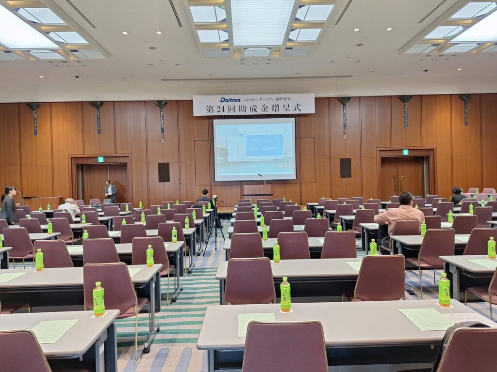 令和7年9月9日の火曜日、大津市のピアザ淡海におきまして、公益財団法人ダイトロン福祉財団第24回助成金贈呈式が開催され、当法人の理事長が出席し、助成金の目録を受け取りました。助成金は障がい者支援のために、有効に、大切に使わせていただきます。ありがとうございました。